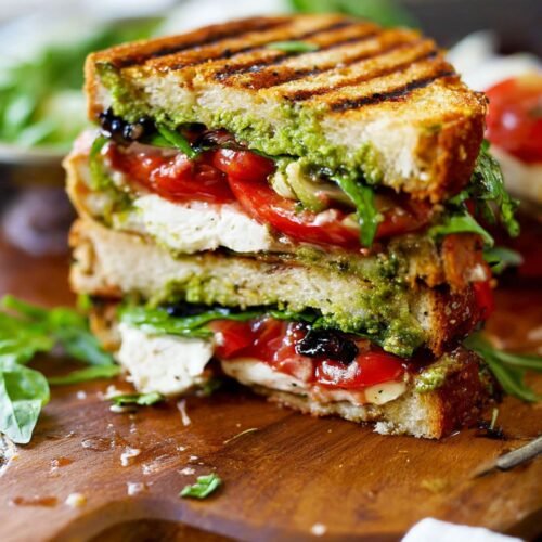 Die Zutaten wie Tomaten und Mozzarella sollten am besten frisch geschnitten im Kühlschrank bereitliegen. So kannst du das Sandwich bei Bedarf in wenigen Minuten zusammenstellen.