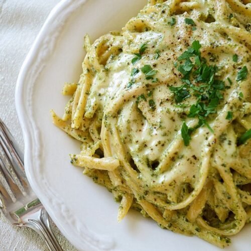 Pasta Rezepte unter 20 Minuten sind ideal für stressige Wochentage oder spontane Kochmomente. Diese cremige Pesto Pasta bringt genau das auf den Teller – schnell gemacht, voller Geschmack und richtig sättigend. Mit wenigen Zutaten entsteht im Handumdrehen ein Gericht, das sowohl solo als auch mit Beilagen überzeugt. Ob du cremige pasta rezepte garnelen liebst oder dich für cremige pasta rezepte mit feta interessierst, diese Variante lässt sich ganz nach Wunsch abwandeln. Auch cremige pasta rezepte gemüse oder cremige pasta rezepte spinat passen wunderbar zu dieser Basis. Die Zubereitung bleibt dabei immer cremige pasta rezepte einfach und ist auch für Anfänger geeignet. Wer cremige tomaten pasta rezepte bevorzugt, kann etwas Tomatenmark untermischen. So bekommst du viele Geschmacksrichtungen aus nur einem Grundrezept. Ein echter Allrounder für die schnelle Küche.