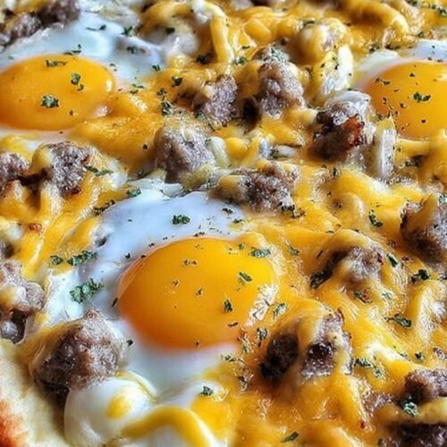 Diese Frühstückspizza mit Wurst und Soße verbindet alles, was man an einem ausgiebigen Frühstück liebt. Die Grundlage bildet ein klassischer Pizzateig, knusprig gebacken, wie man es von Pizza Rezepte kennt. Darüber verteilt sich eine cremige, pikante Wurstsoße, ergänzt durch fluffiges Rührei und eine ordentliche Portion Käse.
