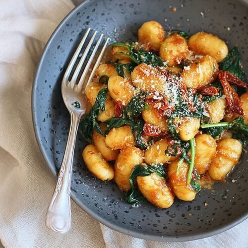 Gnocchi bieten die perfekte Grundlage für eine Vielzahl an Gerichten. Ihr weiches Inneres und ihre Fähigkeit, Soßen gut aufzunehmen, machen sie besonders beliebt. In dieser Version treffen sie auf aromatische getrocknete Tomaten und frischen Spinat, was dem Gericht eine ausgewogene Mischung aus Süße, Säure und Frische verleiht.
