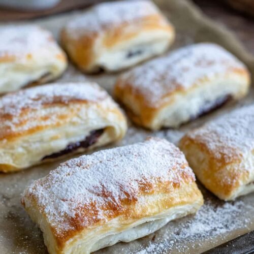 • Nur zwei Zutaten: Blätterteig und Schokolade